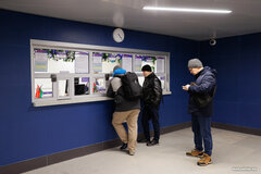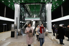 По традиции первыми станцию приняли глава государства, руководство города и сами метростроители. А всех желающих прокатиться по новым станциям (да на новых поездах) позвали приходить к 16:00. То ли из-за времени (самый разгар рабочего дня), то ли из-за новогодней суеты толпа из любопытствующих (как можно было бы ожидать) под дверями не собралась. Самыми активными «урбанистами» оказались подростки и пенсионеры. Первые прямо отсчитывают время до «запуска» и первого поезда. Вторые — терпеливо ждут.